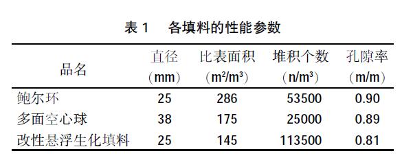 試驗(yàn)用水是溫度為20℃的自來(lái)水,純氧作為氣源,填料分別為多面空心球、鮑爾環(huán)和改性懸浮生化填料。