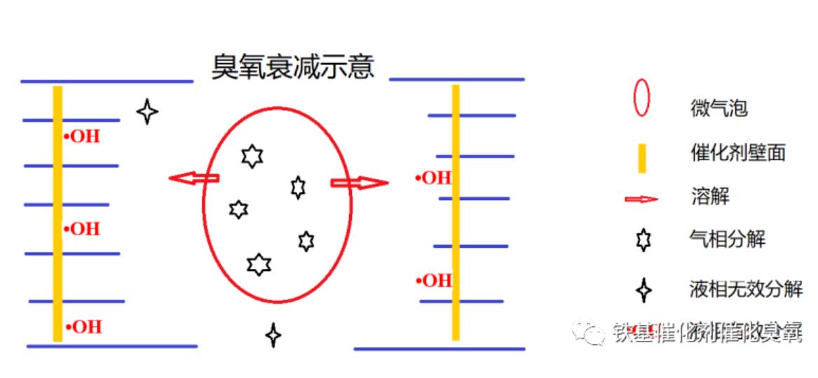 “催化劑填料”這一名詞,在化工行業(yè)有見,但不常用。催化劑的功能是加速反應,屬化學學科概念;填料的功能是為傳質和反應提供場所,屬化工學科概念。在催化臭氧化過程中, •OH產(chǎn)生于臭氧在