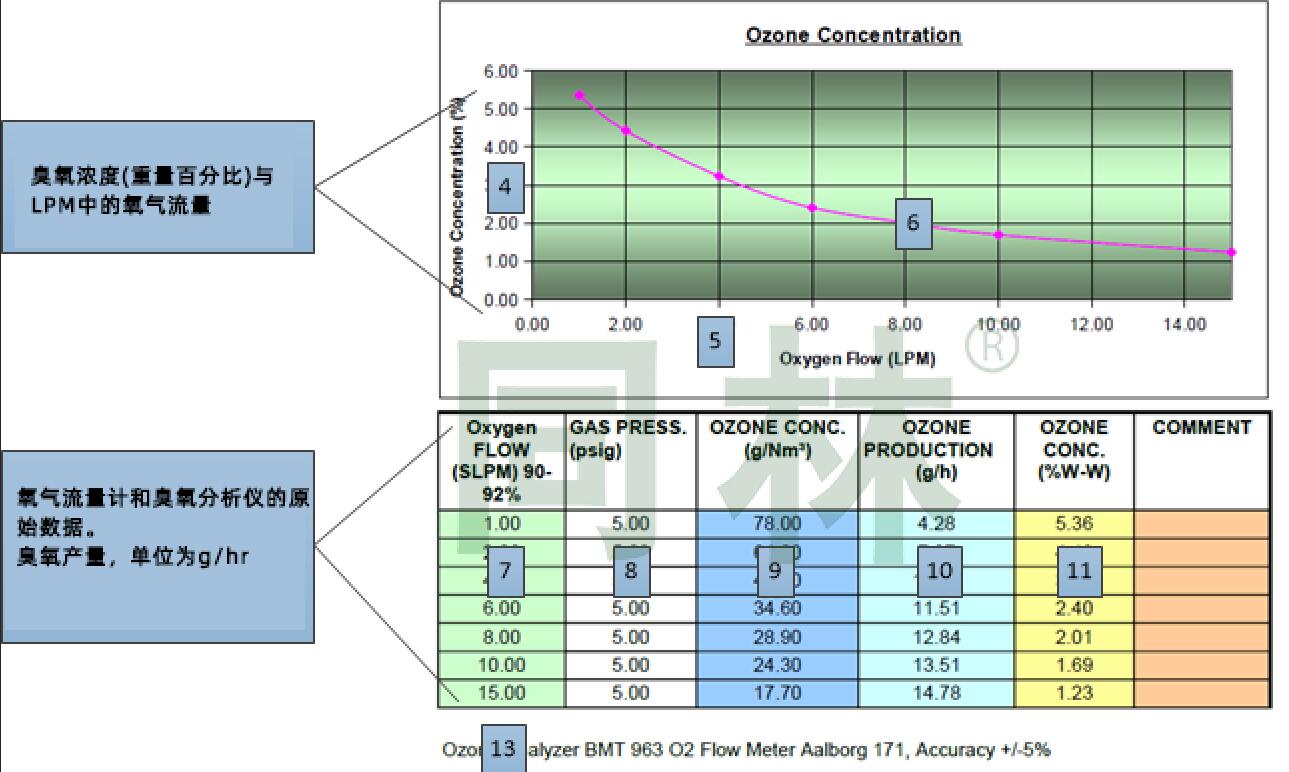 11.     臭氧濃度以重量百分比表示。這是從g/m3計算出來的,供參考。在線計算器轉換g/m3到%的重量在這里